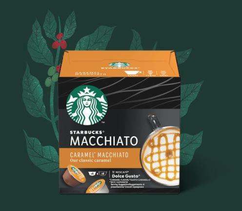 Disfruta de tu café Caramel Macchiato de Starbucks® de una manera sencilla y en casa con las cápsulas de Starbucks® Caramel Macchiato y leches compatibles con cafeteras NESCAFÉ® Dolce Gusto