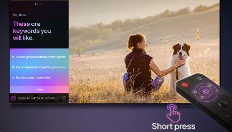 Al presionar brevemente el botón AI en su control remoto se abre Concierge AI, que ofrece palabras clave y recomendaciones personalizadas basadas en su historial de búsqueda y visualización.