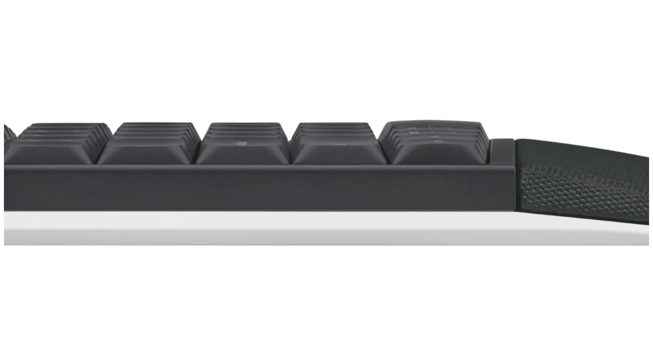 El diseño es ligeramente ondulado para fomentar una posición de escritura natural. Es un teclado de tamaño normal, con una distribución de teclas habitual que no exige readaptaciones del estilo de escritura. El material del reposamanos grande es blando y a la vez resistente, y ofrece soporte total para las muñecas al escribir. Facilita la elevación de las muñecas, para reducir la presión y el cansancio.