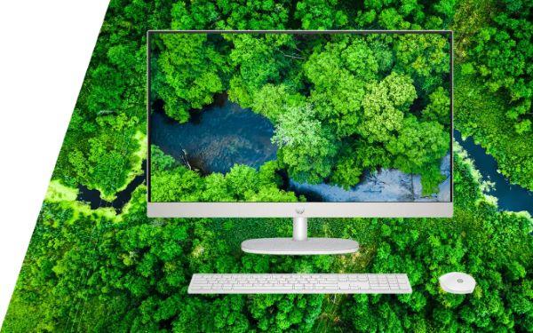 Innovadora y elegante, diseño desmontable para aumentar las unidades por envío y reducir la huella de CO2. Es la primera PC del mundo con granos de café reciclados que dan un acabado moteado. Adicionalmente contiene 10% de metal reciclado, 25% de plástico de origen oceánico reciclado y 25% plástico reciclado posconsumo.