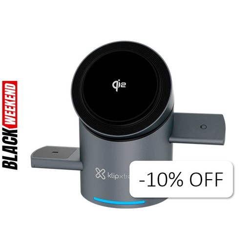Estación de Carga Inalámbrica Klip Xtreme 3-en-1 Qi2 Magnética 15W Plegable