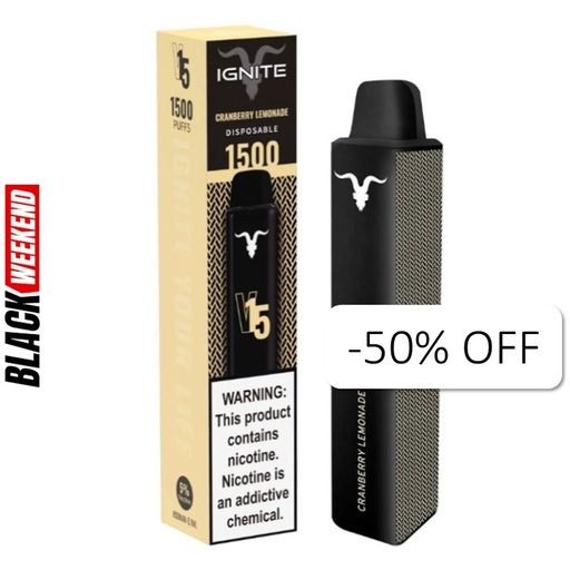 Vape Electronico Ignite V15 1500 Puffs Nic 5g Cranberry Lemonade
