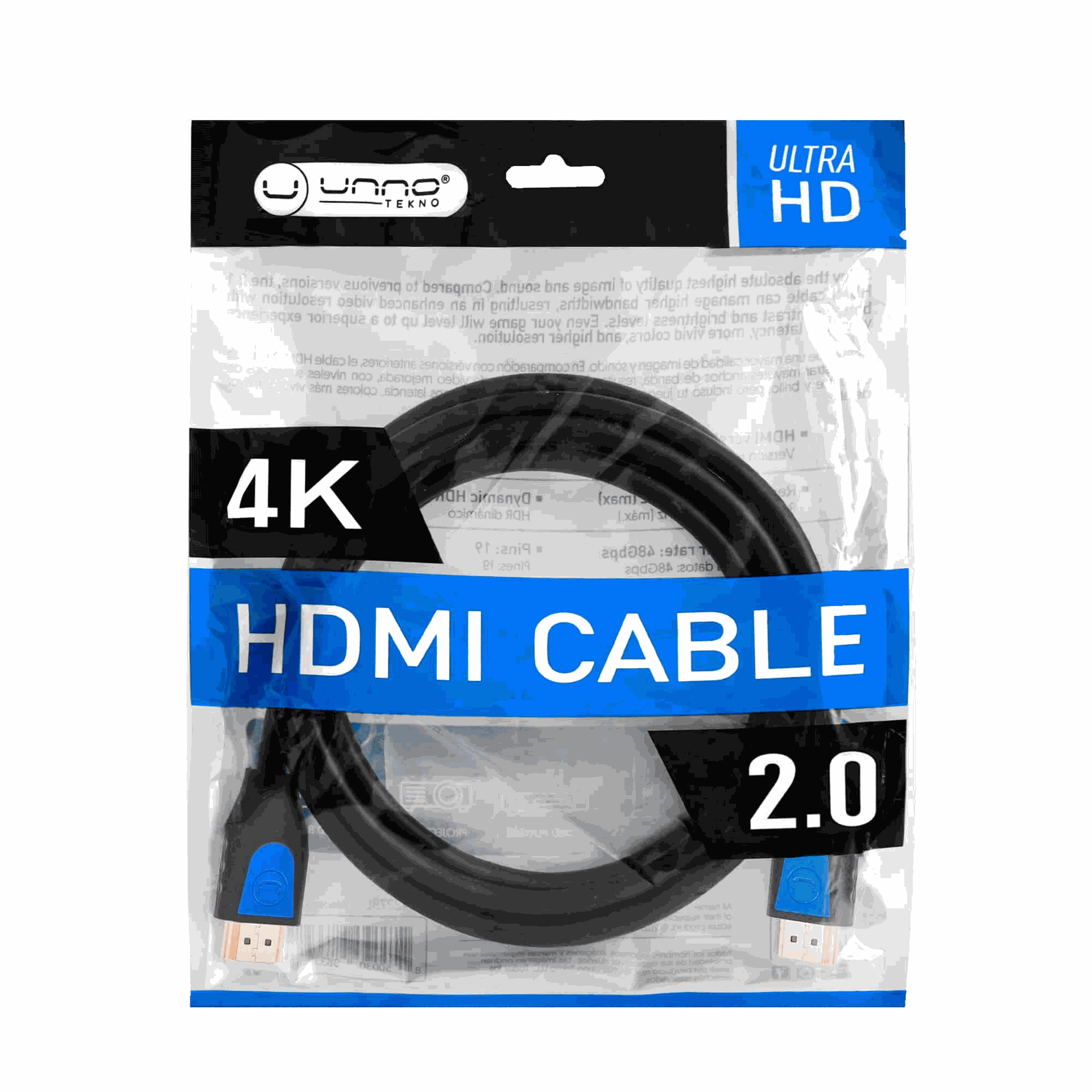 Cable HDMI 2.0 4K Unno Tekno CB4231BK 3 Metros Macho-Macho Negro