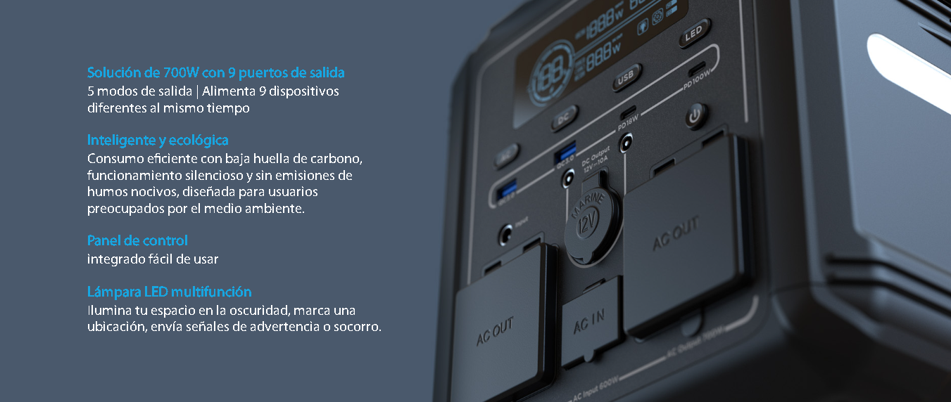 - Carga solar: MPPT 12-30V, 7.5A 180W