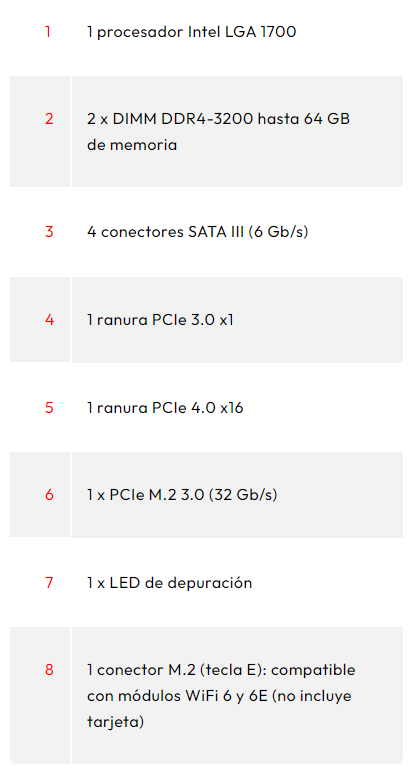 - Soporta 12th, 13th y 14th Gen Procesadores Intel® Core™, Pentium® y Celeron®
