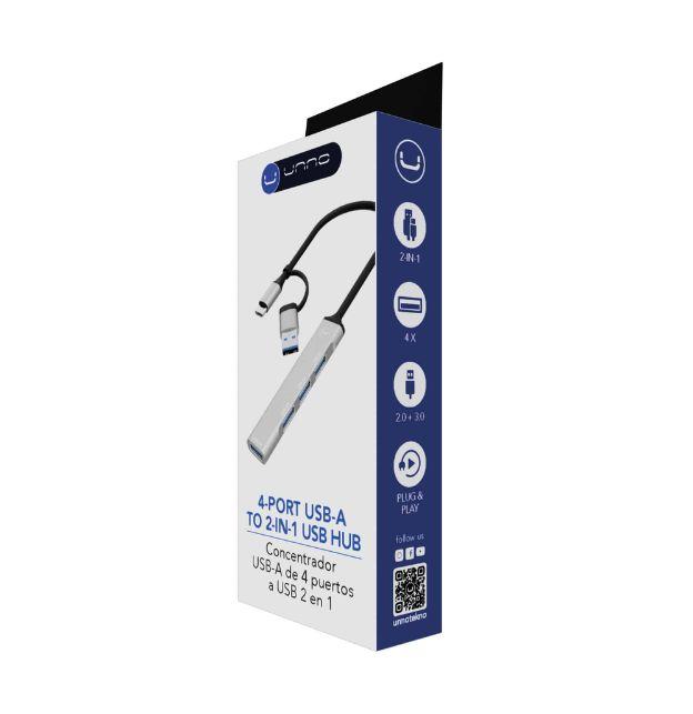 Hub Unno Tekno 4 Puertos HB1014GY USB-A 2 en 1 Gris