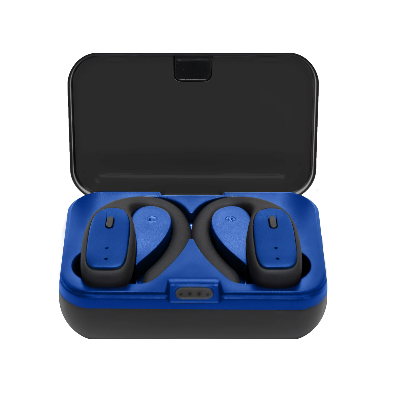 Auriculares Bluetooth 5.0 con hasta 33 horas de autonomía total (5.5 h por carga y 5 ciclos de recarga en el estuche). Controles mecánicos, llamadas manos libres y compatibilidad con asistentes de voz (Google Assistant, Siri, Alexa). Estuche de carga portátil con tapa magnética e indicador de batería. Diseño con ganchos flexibles y compatibilidad con iOS y Android. Batería de 55 mAh en los auriculares y 800 mAh en el estuche. Rango inalámbrico de 10 m, carga por micro USB (5V/1A). Incluye 3 juegos de almohadillas y manual. Peso: 0.25 oz por auricular, 1.6 oz el estuche.