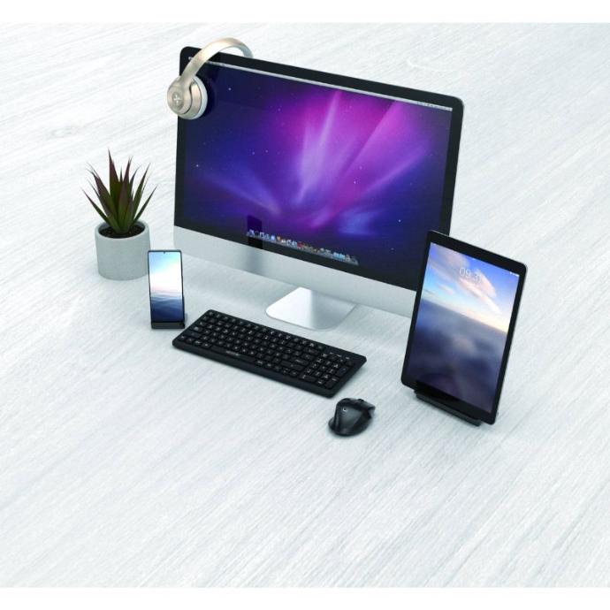 Aumente su productividad con este teclado compacto y ergonómico. Cambie sin problemas entre ordenador, tableta y teléfono con sus canales BT duales y su conexión de 2,4 GHz.