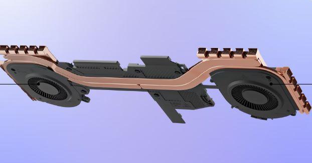 Dos ventiladores con aspas ultrafinas introducen el aire desde la parte superior e inferior; el aire caliente de escape sale por 4 rejillas para ayudar a aumentar el rendimiento.