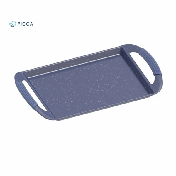 La parrilla Da Vinci de 45 cm, modelo PI0045PMA de PICCA, cuenta con un recubrimiento antiadherente de mármol en elegante color azul, ideal para cocinar de forma uniforme y saludable, brindando durabilidad y un estilo moderno a tu cocina.