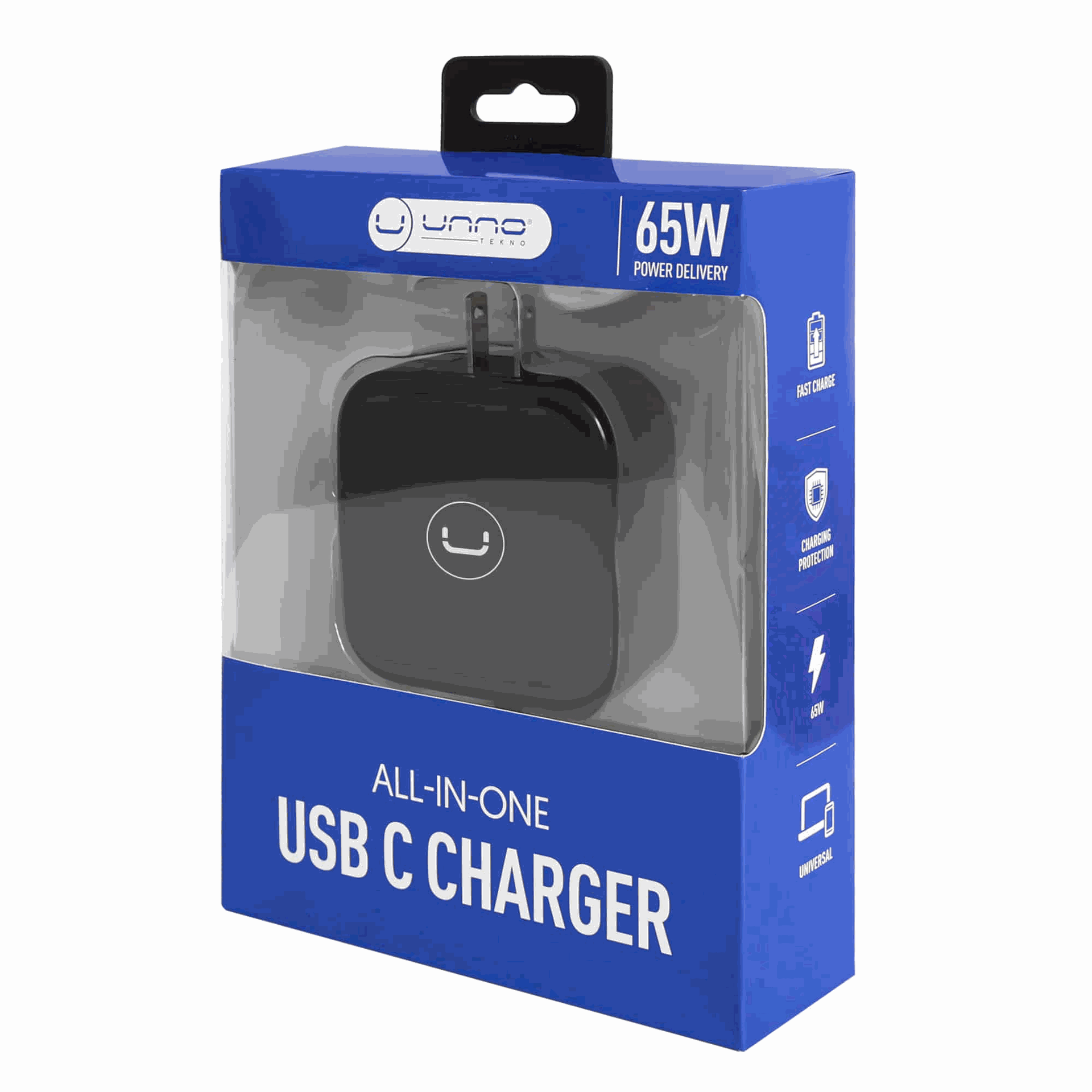 Cargador de Pared Unno Tekno PW5293BK FastCharge USB-C 65W Negro