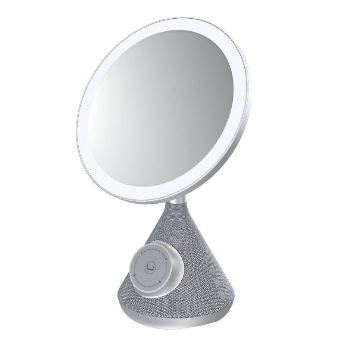 Deja que brille la diva que llevas dentro con DivaGlow, un accesorio de belleza 3 en 1 que combina un espejo de maquillaje, un altavoz inalámbrico y un cargador inalámbrico magnético en un diseño elegante.