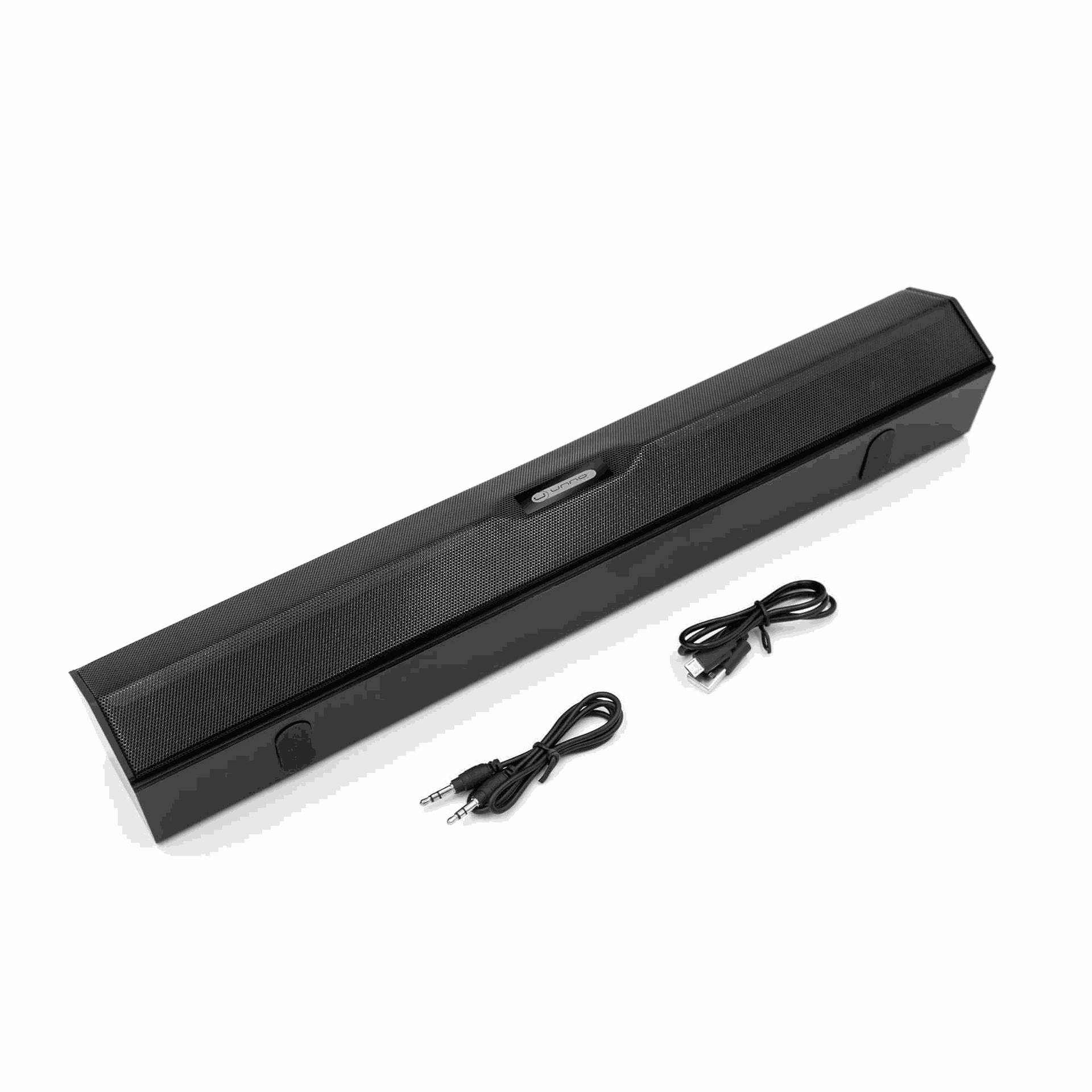 Este altavoz cuenta con una potencia de salida de 14 W (RMS) e incorpora tecnología BT 5.0 con soporte para True Wireless Stereo (TWS), ofreciendo un sonido envolvente. Su diseño incluye una luz LED para fiestas y múltiples modos de reproducción, como BT, USB, tarjeta SD, entrada auxiliar de 3,5 mm y radio FM, con búsqueda y almacenamiento automático de emisoras. También permite realizar llamadas con manos libres. Su batería de iones de litio de 1200 mAh proporciona hasta 3 horas de reproducción con un tiempo de carga de 3 horas. Tiene un alcance inalámbrico máximo de 33 pies y una tensión de entrada de 5V/1A. Sus dimensiones son 16,9 x 3,3 x 3,3 pulgadas y su peso es de 1,7 lb.