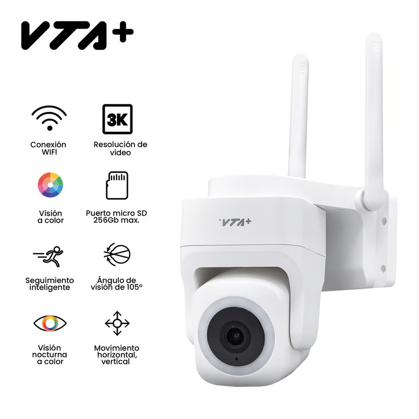 La Cámara de Seguridad VTA+ Square II es la solución perfecta para vigilar tu hogar o negocio con una resolución 3K excepcional y detección de movimiento avanzada. Diseñada para exteriores, esta cámara inteligente te proporciona alta definición y cobertura confiable, todo con la comodidad del control remoto desde tu smartphone.
