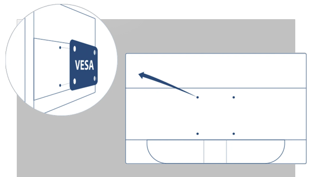 Ya sea que prefieras un montaje en pared o una configuración de escritorio con varios monitores, el soporte VESA ofrece lo último en flexibilidad. Y cuando se combina con accesorios de terceros, el soporte VESA te permite colocar tu monitor donde quieras.