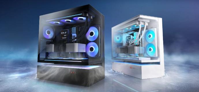 El diseño convencional comprime tanto la fuente de alimentación —una fuente principal de calor— como componentes críticos en el mismo espacio, restringiendo el acceso del flujo de aire solo a los paneles superior, delantero y trasero. La Ventilación Central Flotante divide la cabina de la PSU y la cámara principal con un hueco estructural que permite que el aire circule con mayor libertad y propósito. Esta separación arquitectónica flotante también otorga a la serie CFV235 su identidad visual única y progresiva.