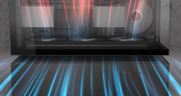 El espacio flotante de la serie FV235 es un vacío discreto completamente tridimensional suspendido dentro del chasis. 270° de entrada de aire espaciosa y sin obstáculos ofrece una ventilación mayor que los diseños cerrados donde más se necesita.