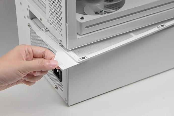 Un bastidor de acero de 1,5 mm de grosor refuerza el chasis, preservando la integridad estructural incluso con el diseño de ventilación central suspendida. El resultado es una arquitectura audaz y abierta que se mantiene rígida, fiable y lista para compilaciones de alto rendimiento.