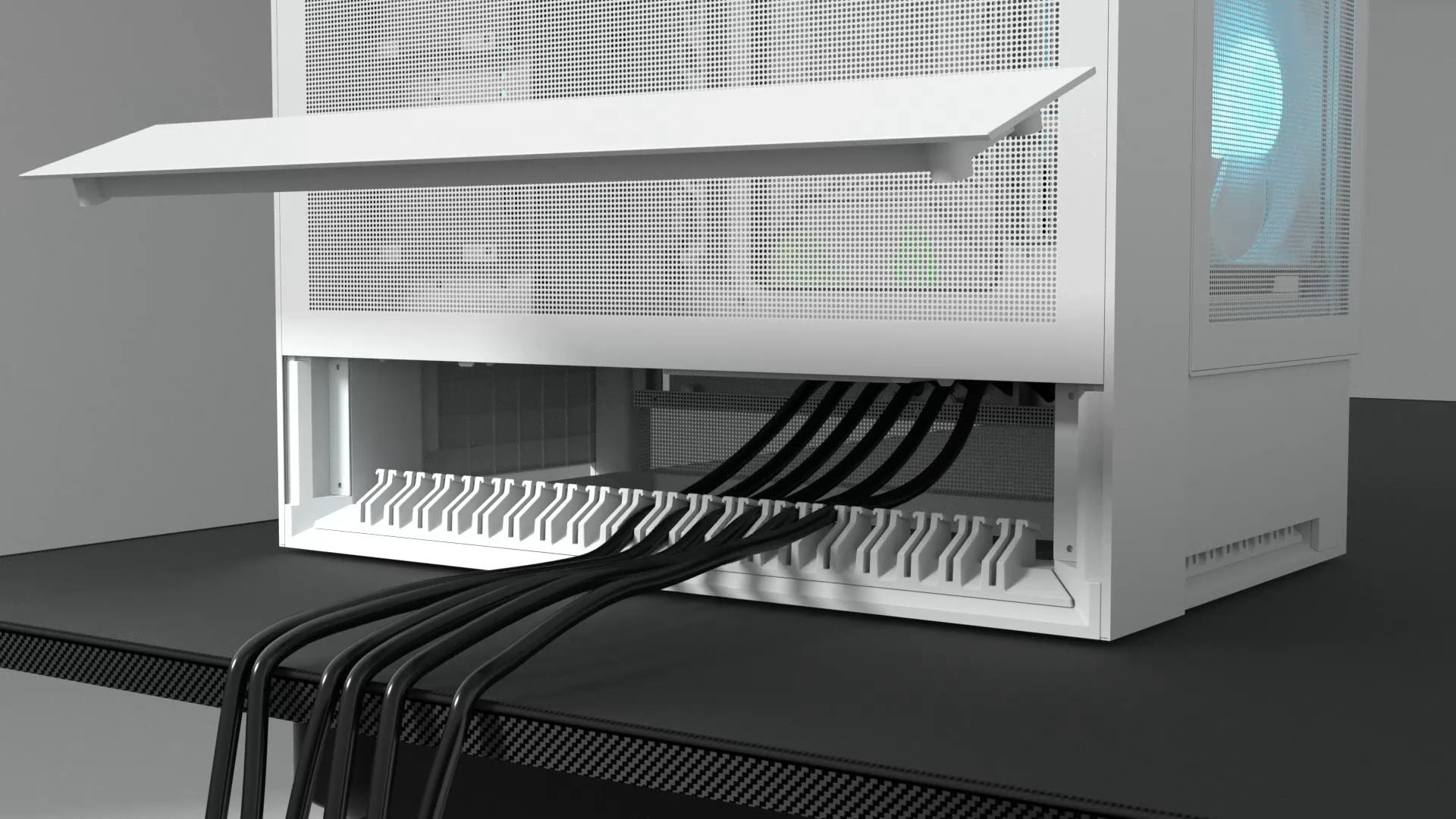 La solución definitiva para la gestión de cables con visibilidad cero : todo el cableado se dirige a través del compartimento de base integrado, lo que permite cargar un interior ultralimpio desde el principio en la configuración.