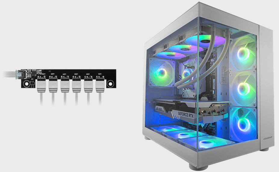El hub de ventilador universal integrado garantiza una sincronización perfecta de la iluminación RGB de los ventiladores.