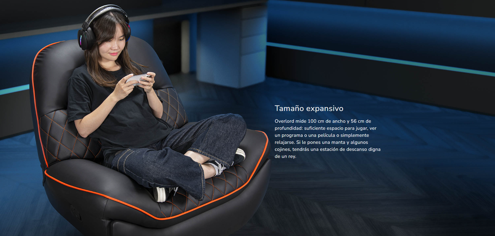El Overlord llama la atención con su presencia imponente y su majestuoso diseño. Envuelto en elegante cuero sintético de PVC con costuras acolchadas en forma de rombos, la libertad de balancearse, reclinarse y girar subraya su grandeza. Convierte cualquier espacio en tu sala de estar personal con su gran tamaño y generoso acolchado, puedes relajarte con elegancia y comodidad, ya sea que estés jugando, viendo una película o simplemente disfrutando como el señor de tu dominio.