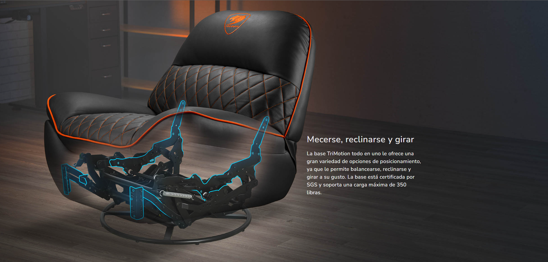 - La base trimotion todo en uno le brinda la libertad de balancearse, reclinarse y girar.