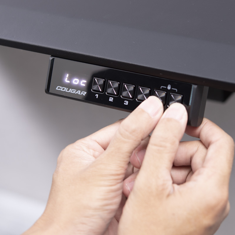 El controlador de visualización de altura LCD le permite operar fácilmente. Puede operar intuitivamente los botones de flecha para subir o bajar alturas con cuatro botones de memoria para guardar sus alturas favoritas. Mediante la función de un solo toque puede moverse a sus alturas memorizadas para un ajuste rápido.