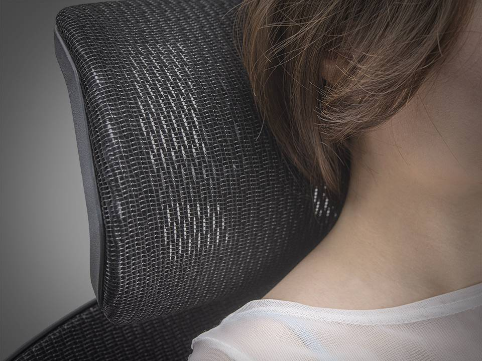 Los apoyabrazos con hiperrotación 3D brindan un amplio rango de movimiento y admiten varias posiciones de los brazos, mientras que el reposacabezas se ajusta para una comodidad personalizada.