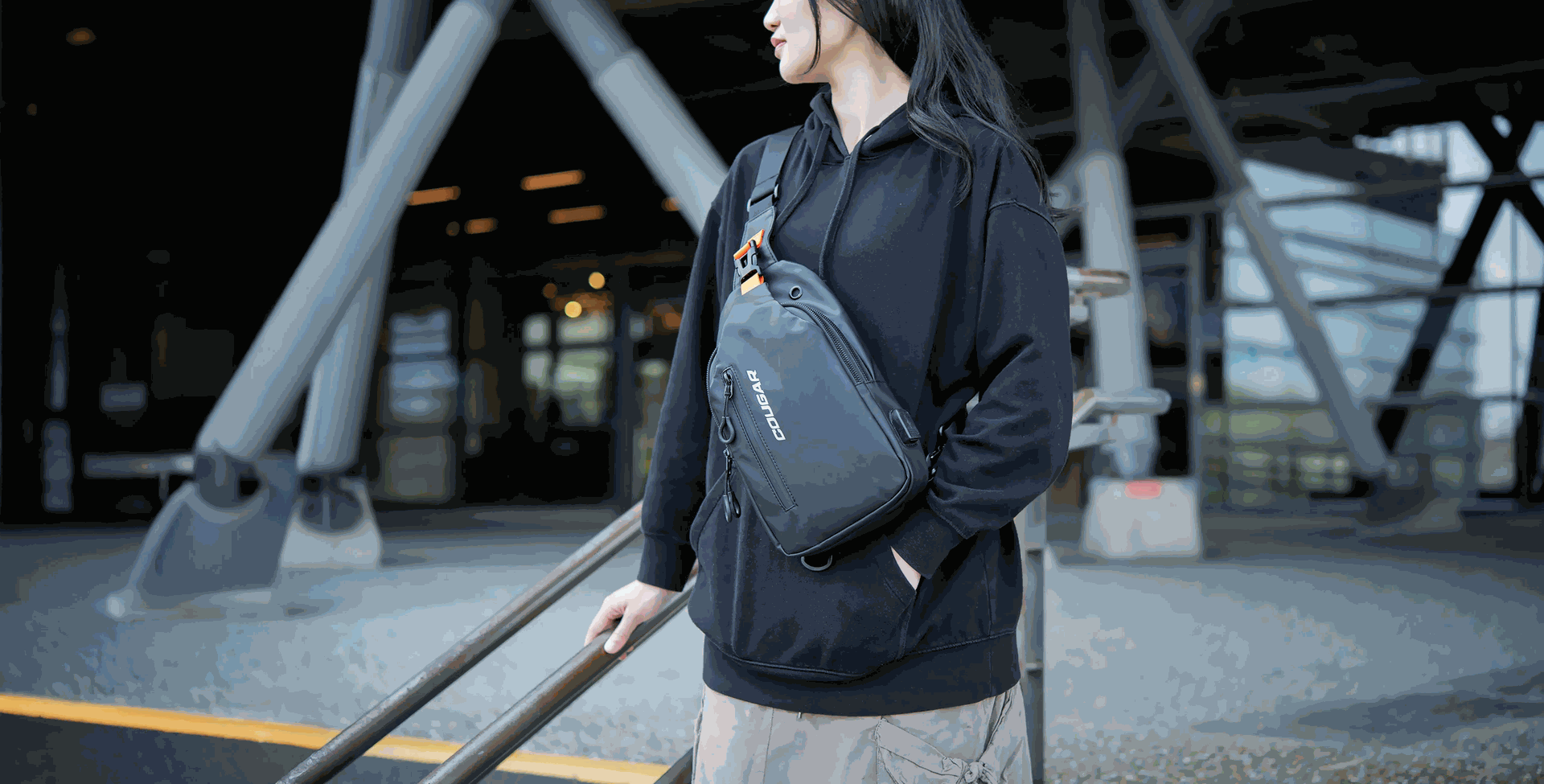 La correa para el hombro es ajustable en ambos extremos, lo que le permite personalizar la holgura según sus preferencias y puede colgarse sobre el hombro derecho o izquierdo.