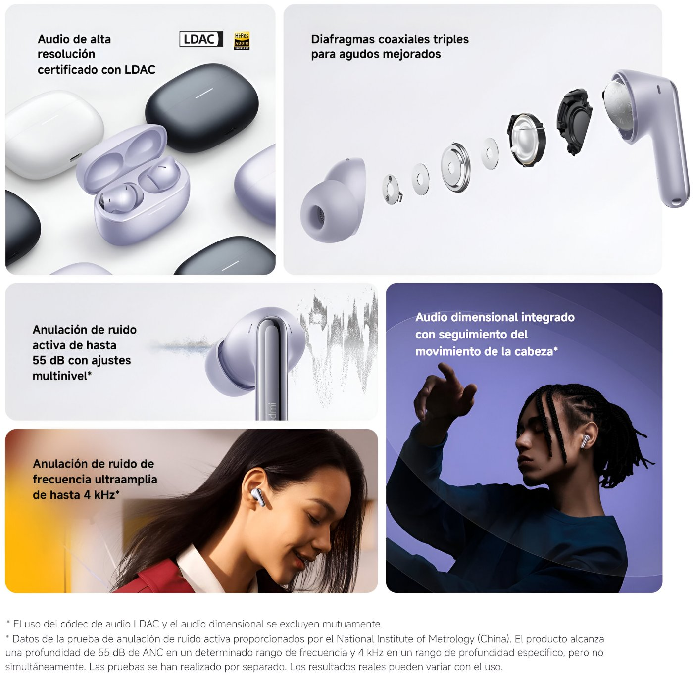 - Cancelación de ruido de 55 dB