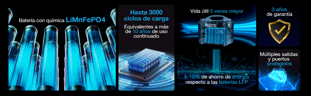 - Ciclos de bateria 3000 ciclos 80% mas de capacidad