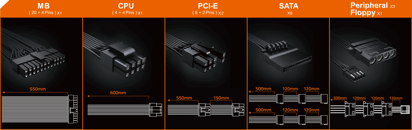 - 1 x 4-Pin floppy