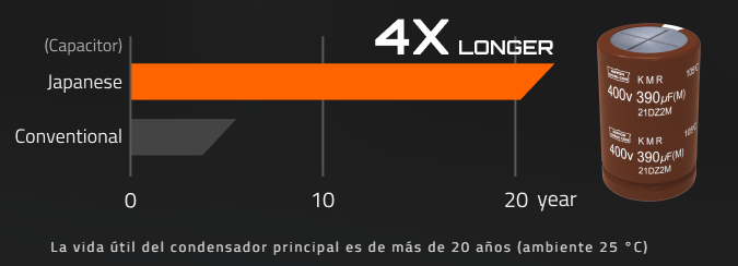 Los condensadores primarios provienen de fabricantes japoneses de primer nivel, lo que proporciona una fuente de alimentación estable y de primera calidad que extiende efectivamente la vida útil del producto.