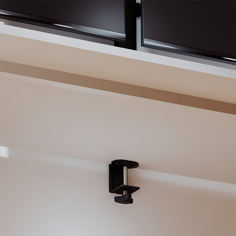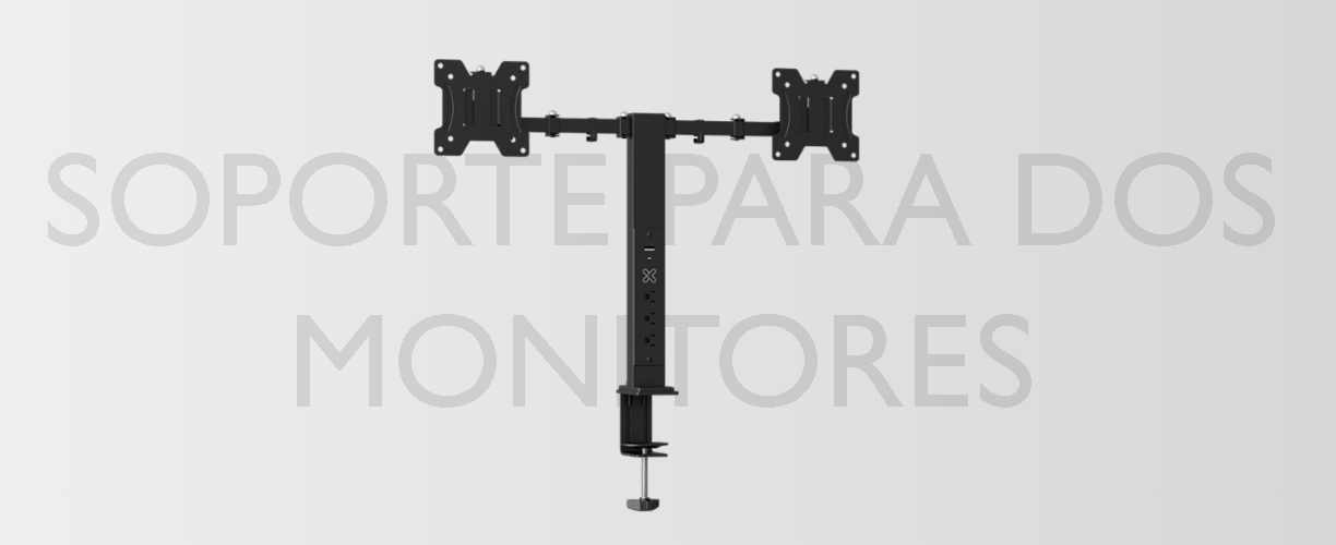 Soporte para dos monitores con regleta integrada y puertos USB