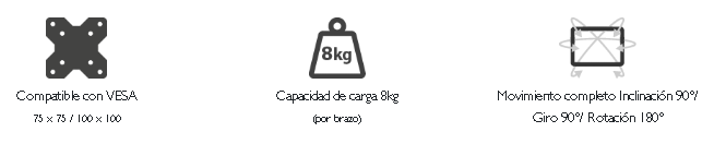 - Capacidad de carga: 4.4-17.6 lb /por brazo
