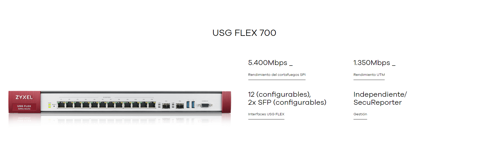 - Rendimiento del cortafuegos SPI 5,400 (Mbps)