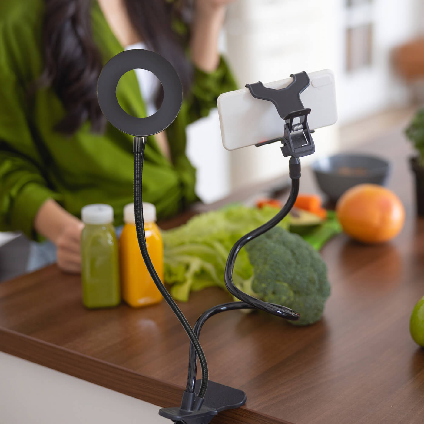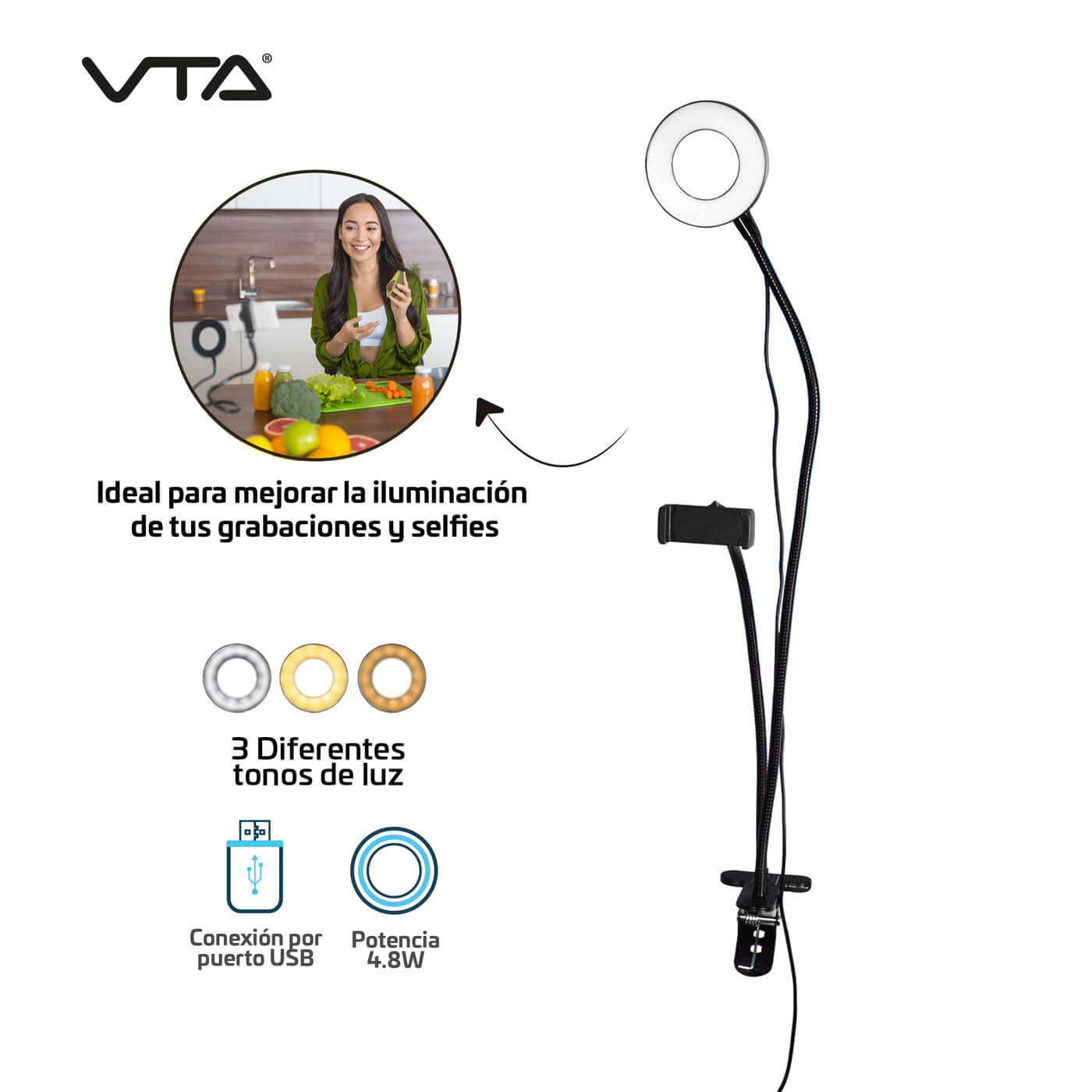Aro de Luz VTA+ con Soporte Ajustable para Celular USB Negro