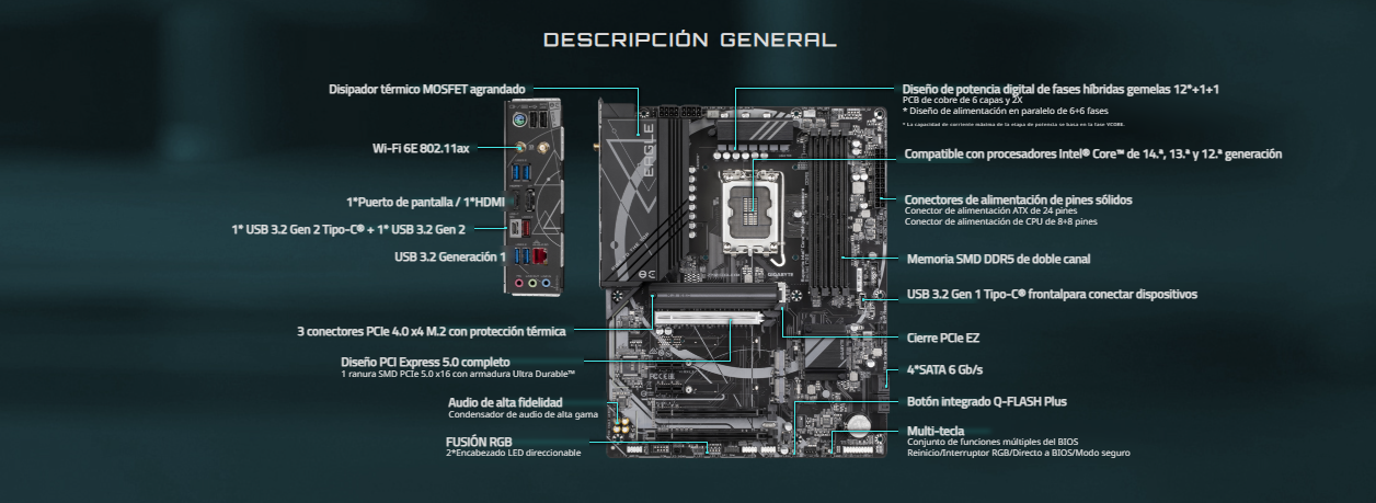 Motherboard Gigabyte Z790 Eagle AX LGA1700 12th, 13th y 14th Gen 4x DDR5 ATX