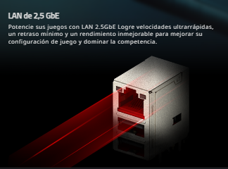 - Puerto de Red LAN Realtek® 2.5GbE 100/1000/2500 Mb/s
